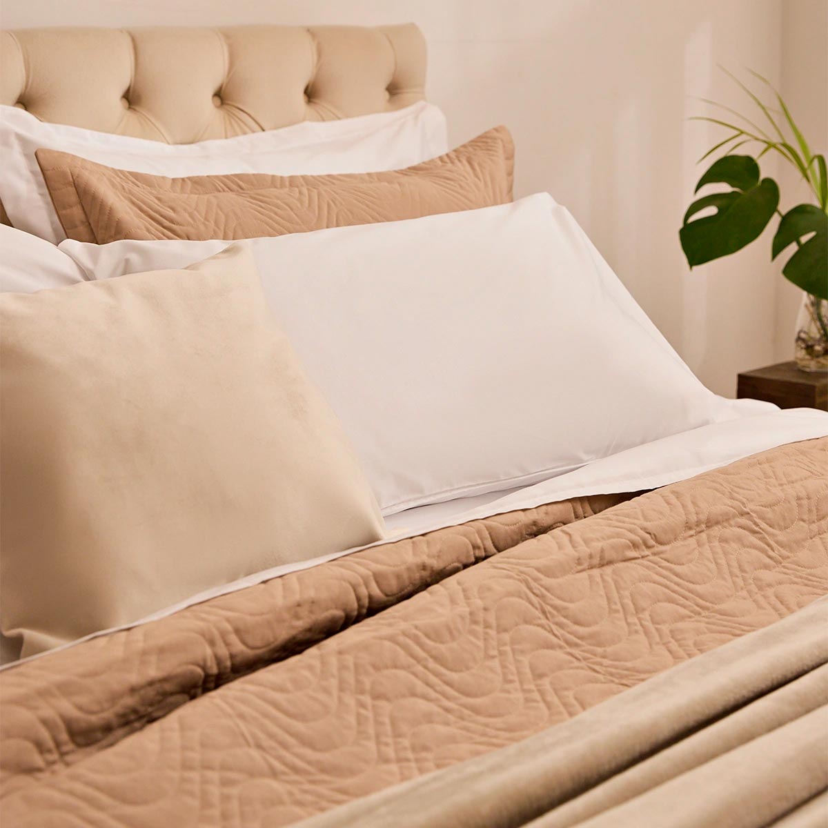 A linha de lençóis e fronhas 200 fios 65% Algodão e 35% Poliéster apresenta uma evolução na quantidade de fios, toque e apresentação do produto.