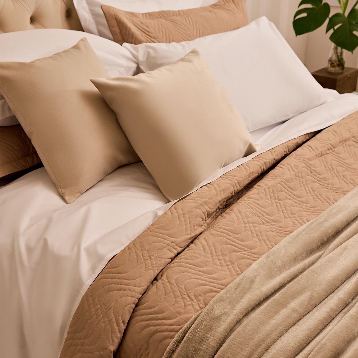 Alinhando uma trama e urdume bem fechado garantem um tecido com ótimo cobrimento do colchão, com toque muito agradável e todas as facilidades para lavanderia que um produto de uso profissional e com composição mista oferece, isto é: lava mais facil, seca mais rápido, amarrota menos com grande durabilidade.