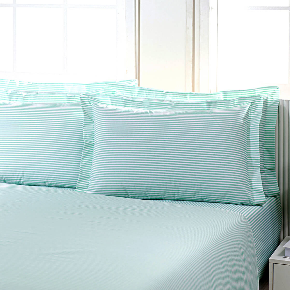 Lençol Queen Listrado Verde Sem Elástico 180 Fios Confort - Hotelaria.