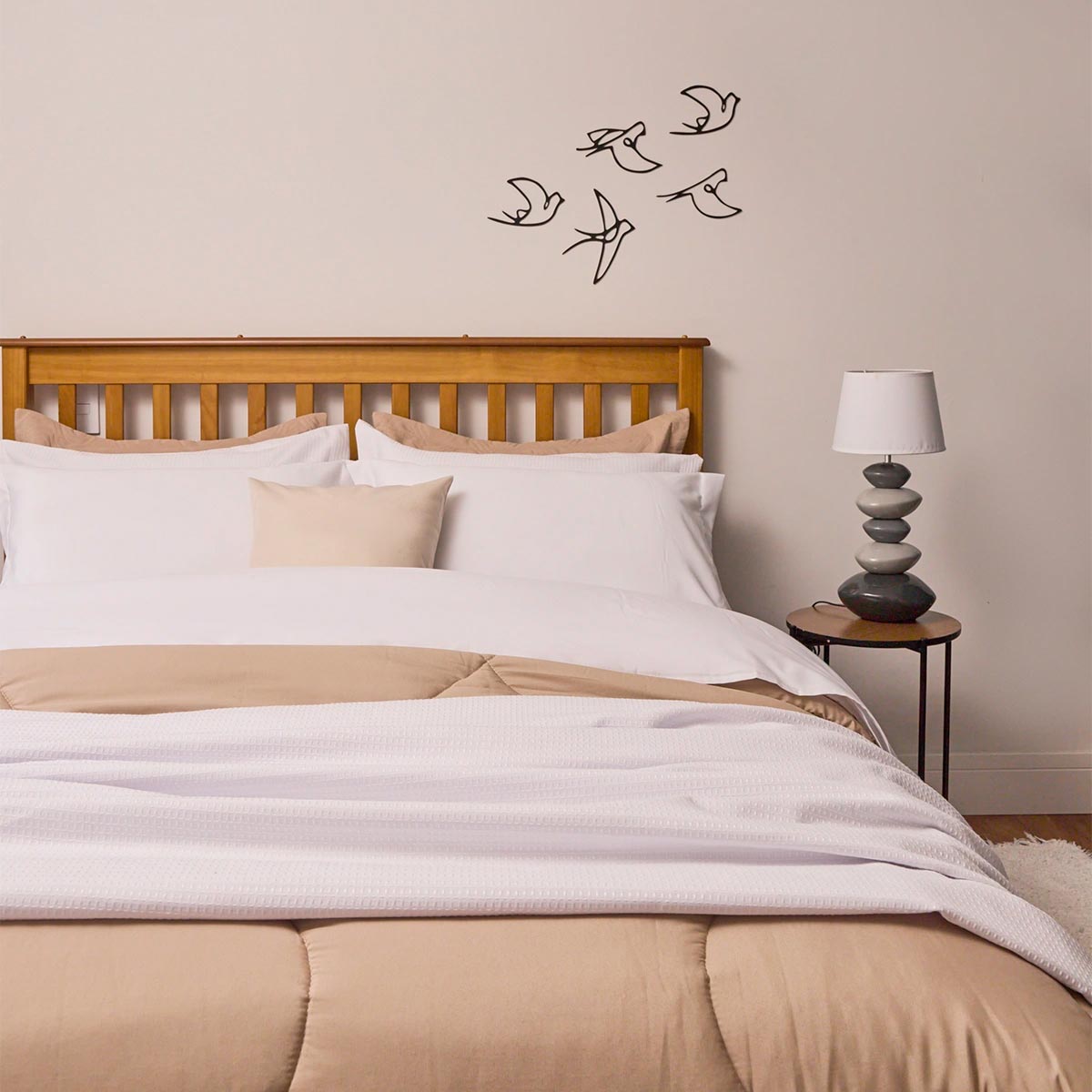 O leve trabalho na trama da colcha torna uma peça versátil, com otimo caimento na cama.