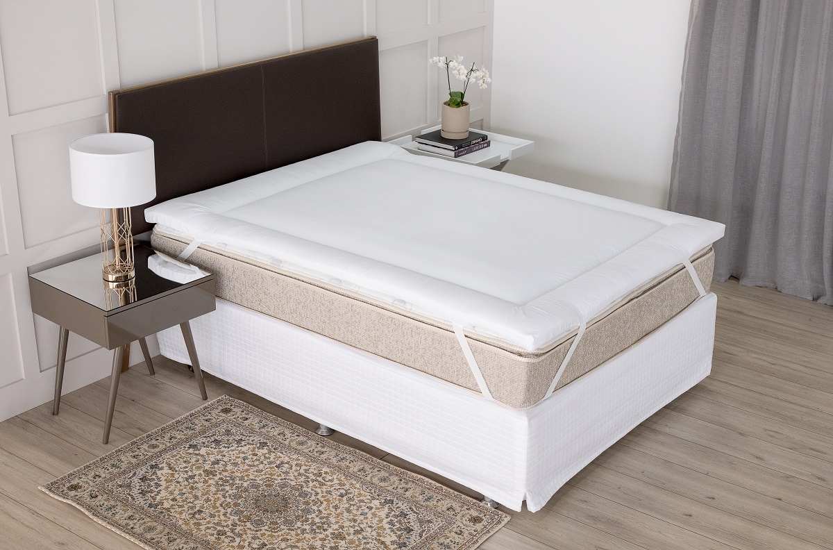 O Piollow Top possui alças elásticas nas 4 laterais que ajustam a altura e reforçam a sua fixação nos cantos do colchão fazendo com ele não escorregue.